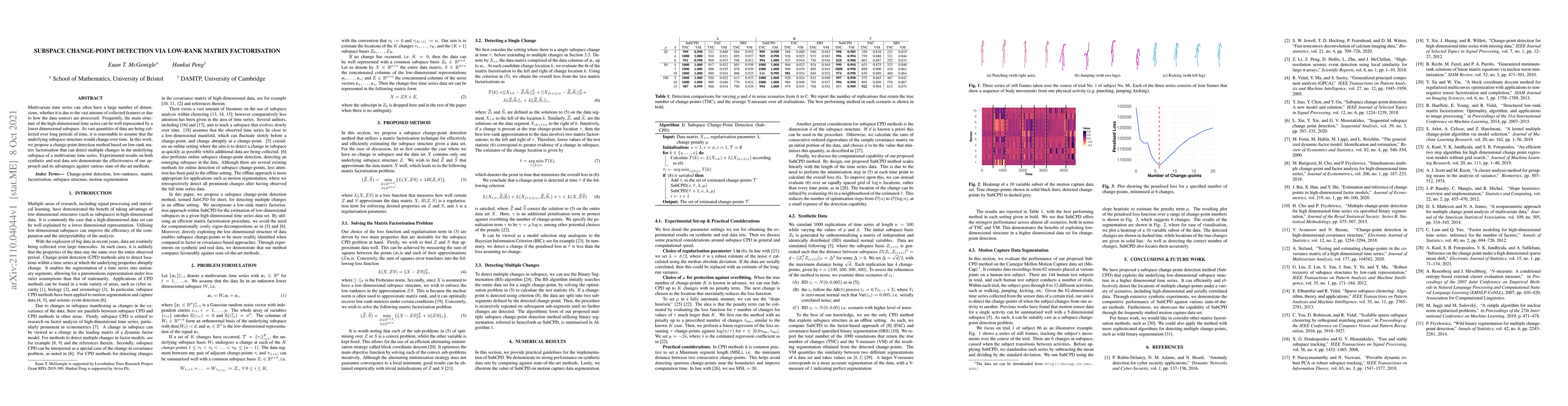 This research introduces a change-point detection method for multivariate time series using low-rank matrix factorization. The method can identify multiple subspace changes in high-dimensional data over time, proven effective through experiments on synthetic and real datasets, outperforming existing methods.