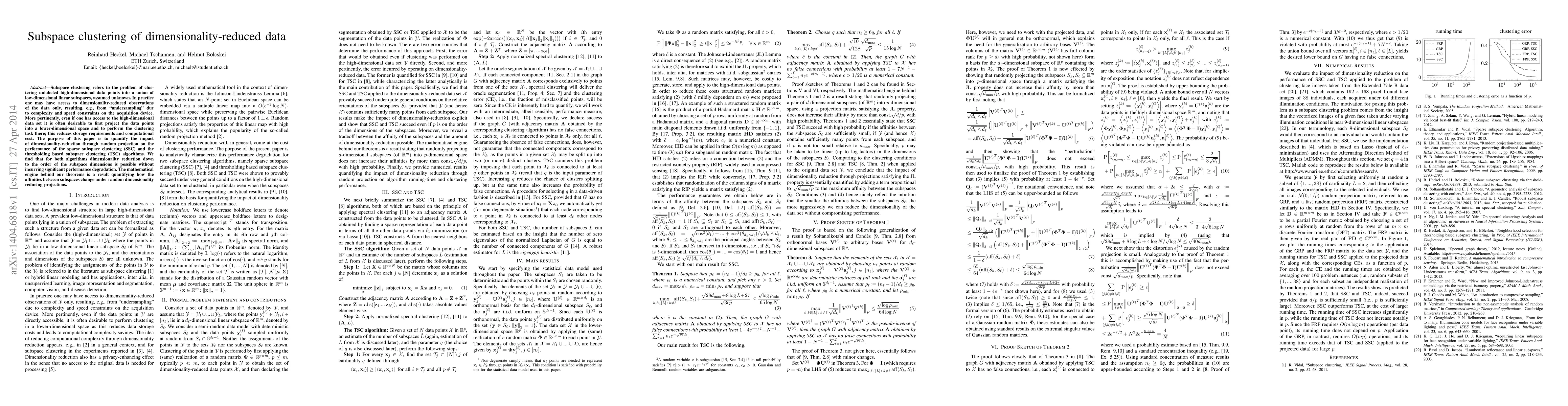 This paper investigates the impact of dimensionality reduction via random projection on subspace clustering algorithms, finding that reducing dimensions to the order of subspace dimensions does not significantly degrade performance for sparse subspace clustering and thresholding-based subspace clustering. The study uses mathematical theorems to quantify changes in subspace affinities under projection.