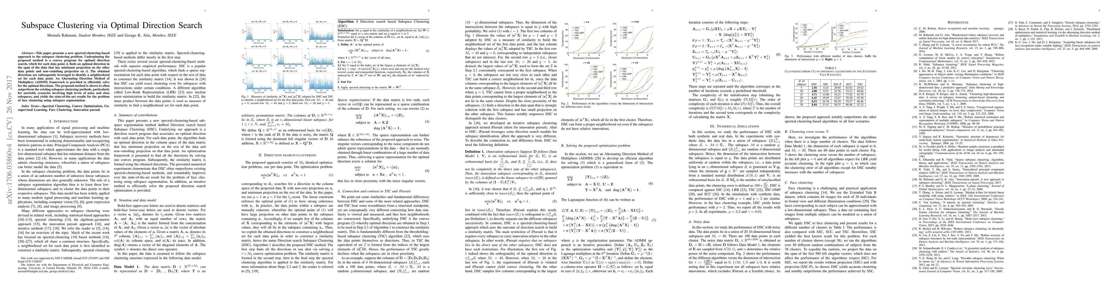 This paper introduces a new spectral clustering method for subspace clustering based on an optimal direction search via a convex program. The method efficiently identifies optimal directions for each data point, leading to superior performance in noisy and complex scenarios, achieving state-of-the-art results in face clustering.