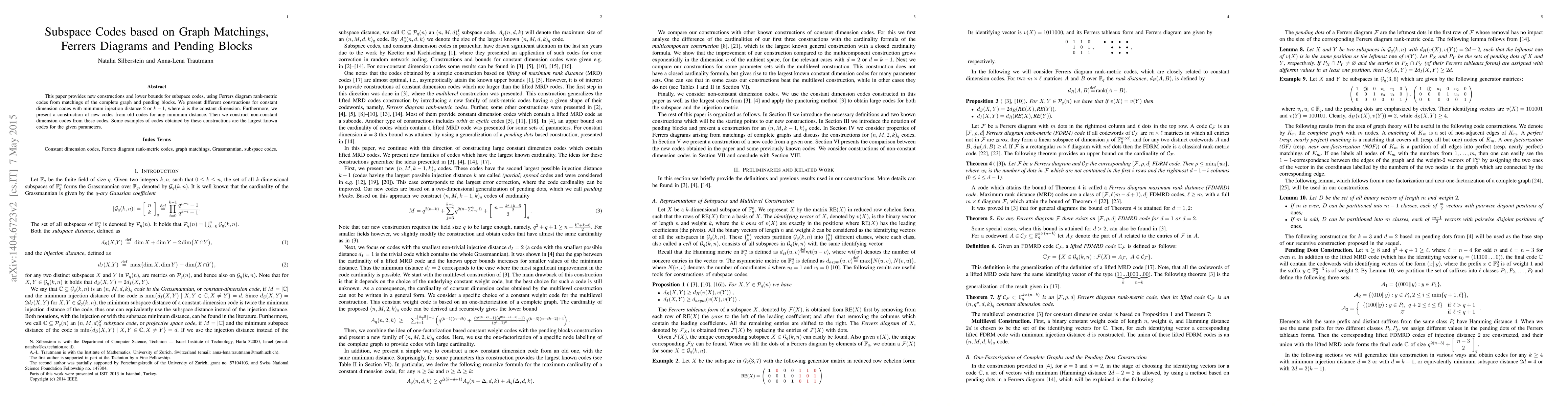 This paper provides new constructions and lower bounds for subspace codes, using Ferrers diagram rank-metric codes from matchings of the complete graph and pending blocks. We present different constructions for constant dimension codes with minimum injection distance $2$ or $k-1$, where $k$ is the constant dimension. Furthermore, we present a construction of new codes from old codes for any minimum distance. Then we construct non-constant dimension codes from these codes. The examples of codes obtained by these constructions are the largest known codes for the given parameters.
