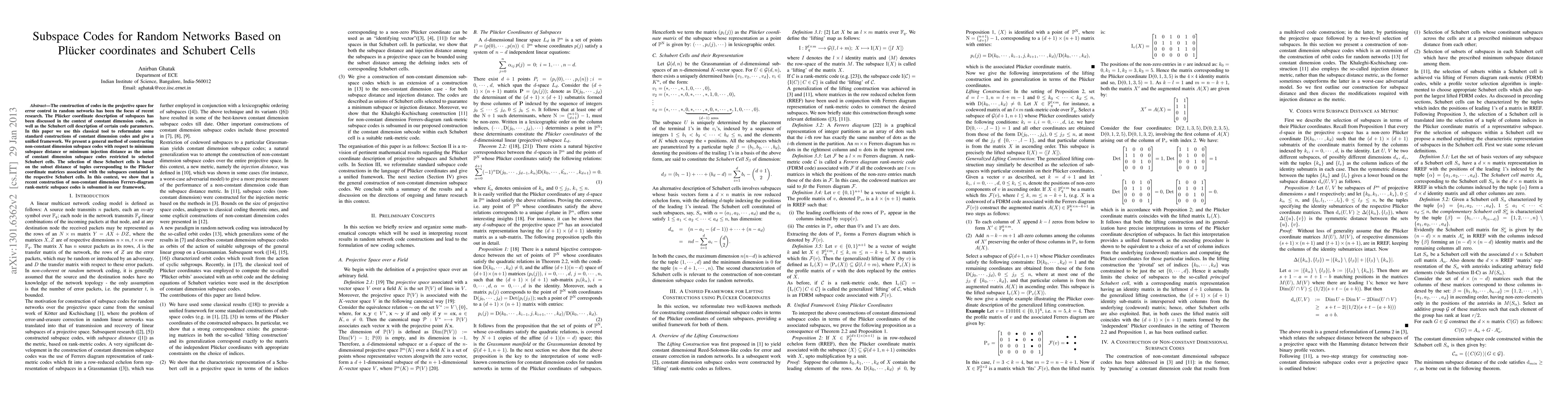 This paper reformulates constant dimension subspace codes for random networks using Pl\"{u}cker coordinates and Schubert cells, presenting a unified framework for constructing non-constant dimension codes based on minimum subspace distance. It shows that a recent Ferrers-diagram rank-metric subspace code construction is included within this new framework.