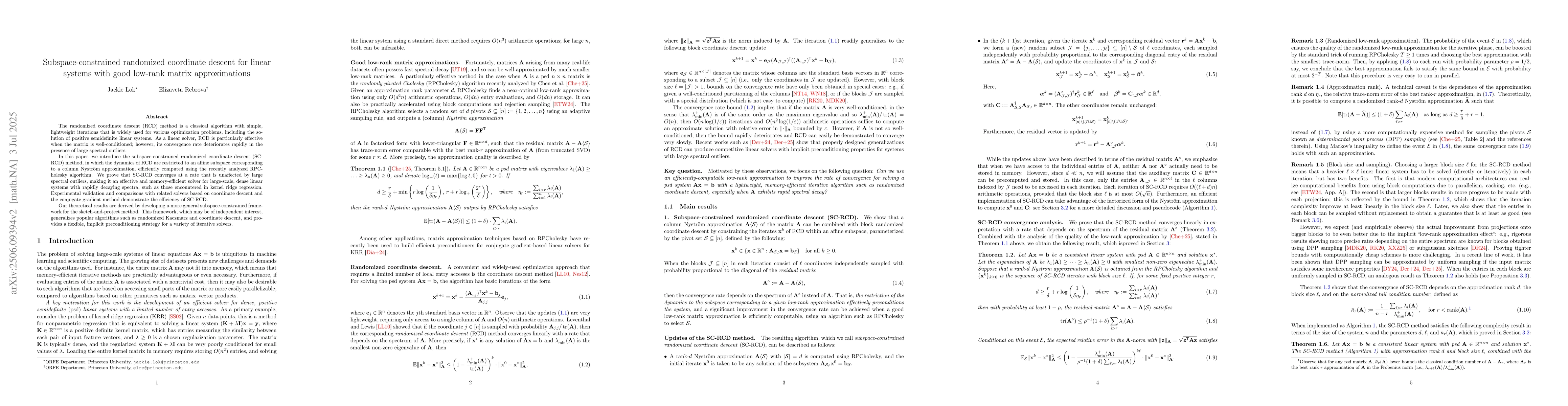 Researchers developed a new optimization method called subspace-constrained randomized coordinate descent (SC-RCD) to solve large linear systems with rapidly decaying spectra, outperforming traditional methods in such cases.