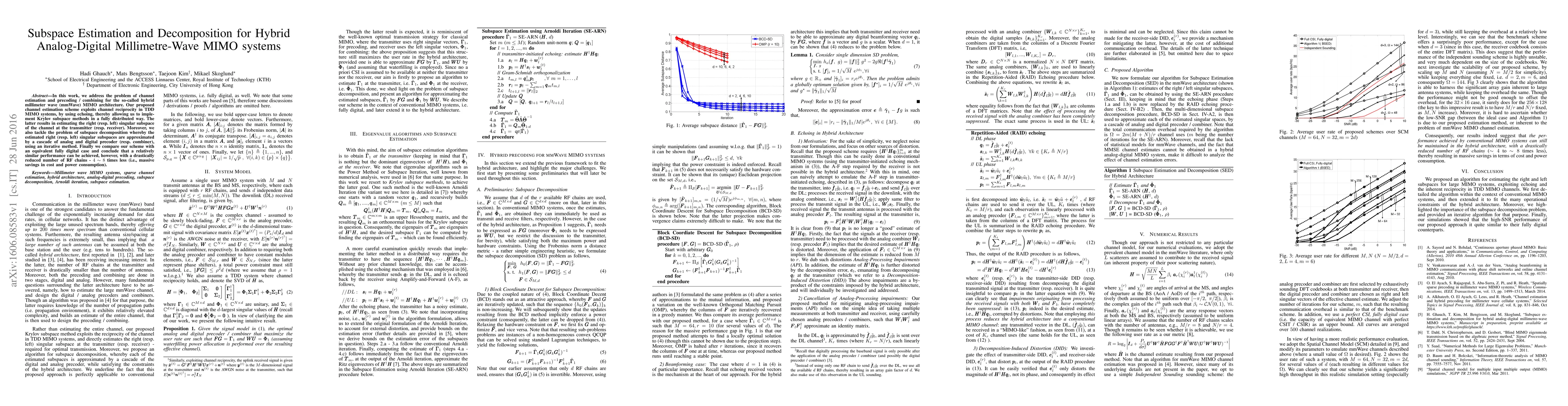 This paper proposes a channel estimation and subspace decomposition scheme for hybrid mmWave MIMO systems, utilizing channel reciprocity and Krylov subspace methods. It achieves comparable performance to fully digital systems while significantly reducing the number of RF chains, leading to substantial cost and power savings.