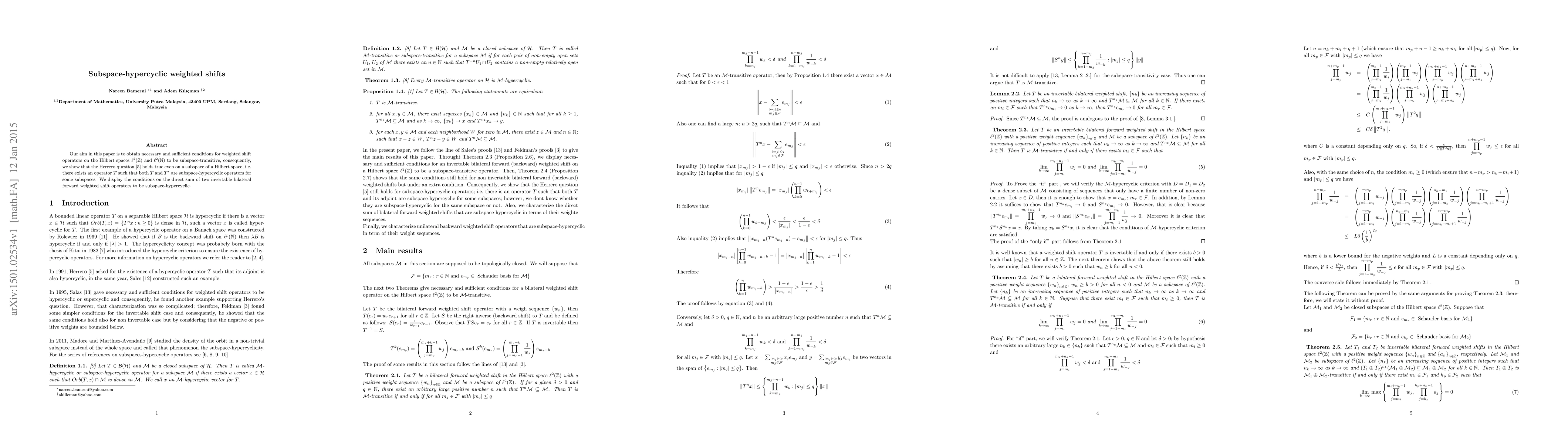 This paper provides necessary and sufficient conditions for weighted shift operators on $\ell^{2}(\mathbb Z)$ and $\ell^{2}(\mathbb N)$ to be subspace-transitive, confirming Herrero's question for Hilbert space subspaces. It also outlines criteria for the direct sum of invertible bilateral forward weighted shift operators to achieve subspace-hypercyclicity.