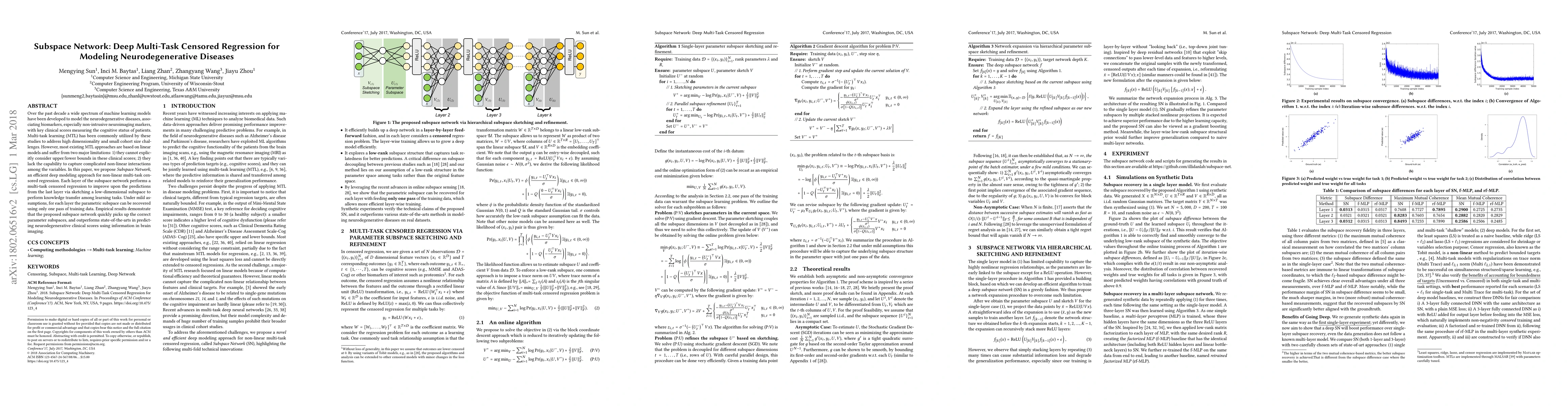 The research introduces Subspace Network, a deep learning method for non-linear multi-task censored regression, specifically for modeling neurodegenerative diseases using brain imaging data. It addresses limitations of linear MTL models by considering clinical score bounds and capturing complex variable interactions, outperforming existing methods in predicting clinical scores.