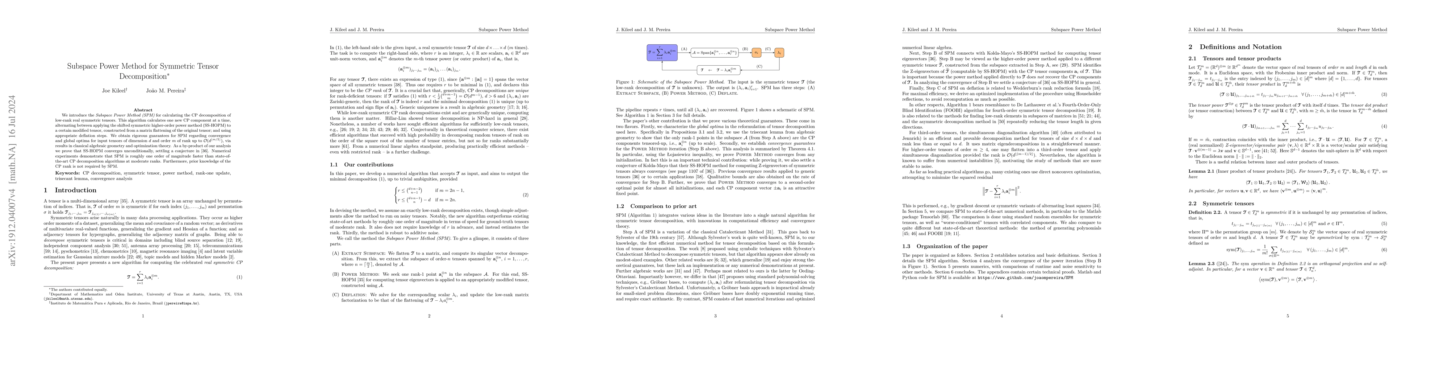 Researchers developed a new algorithm called Subspace Power Method (SPM) to efficiently decompose symmetric tensors into lower-rank structures, outperforming existing methods in speed and robustness.