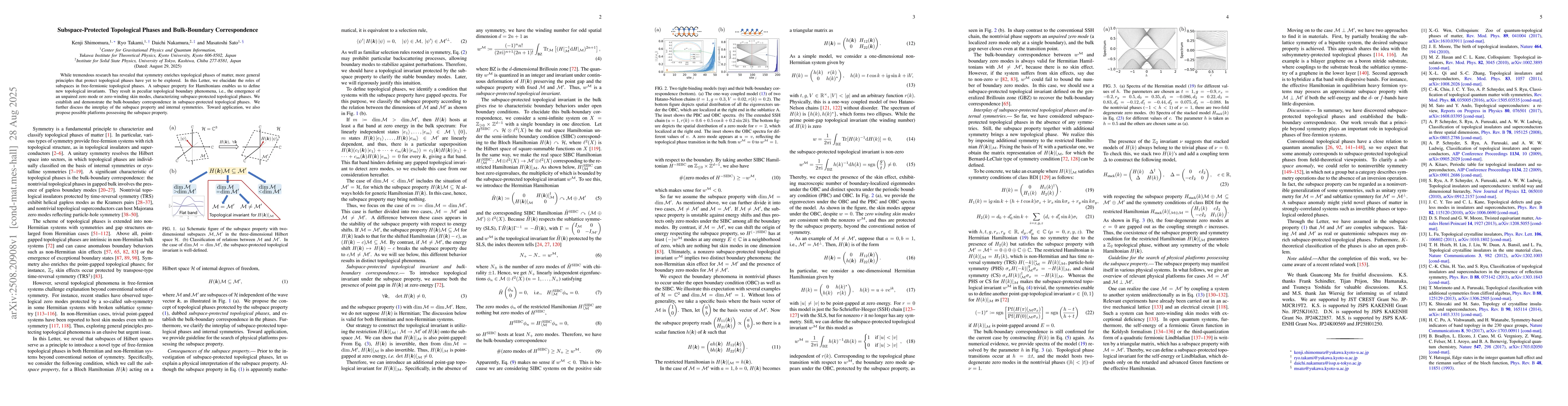While tremendous research has revealed that symmetry enriches topological phases of matter, more general principles that protect topological phases have yet to be explored. In this Letter, we elucidate the roles of subspaces in free-fermionic topological phases. A subspace property for Hamiltonians enables us to define new topological invariants. They result in peculiar topological boundary phenomena, i.e., the emergence of an unpaired zero mode or zero-winding skin modes, characterizing subspace-protected topological phases. We establish and demonstrate the bulk-boundary correspondence in subspace-protected topological phases. We further discuss the interplay of the subspace property and internal symmetries. Toward application, we also propose possible platforms possessing the subspace property.