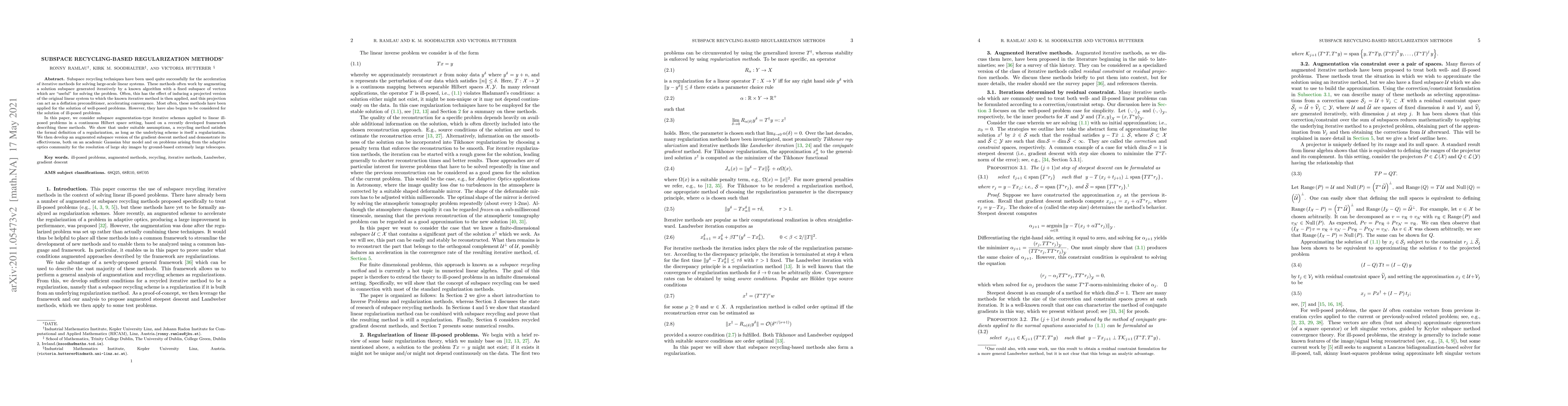 This paper explores subspace recycling techniques for solving ill-posed linear systems in Hilbert spaces, demonstrating that these methods can act as regularization. An augmented subspace gradient descent method is developed and shown to be effective for both academic and real-world applications like resolving large sky images for adaptive optics.