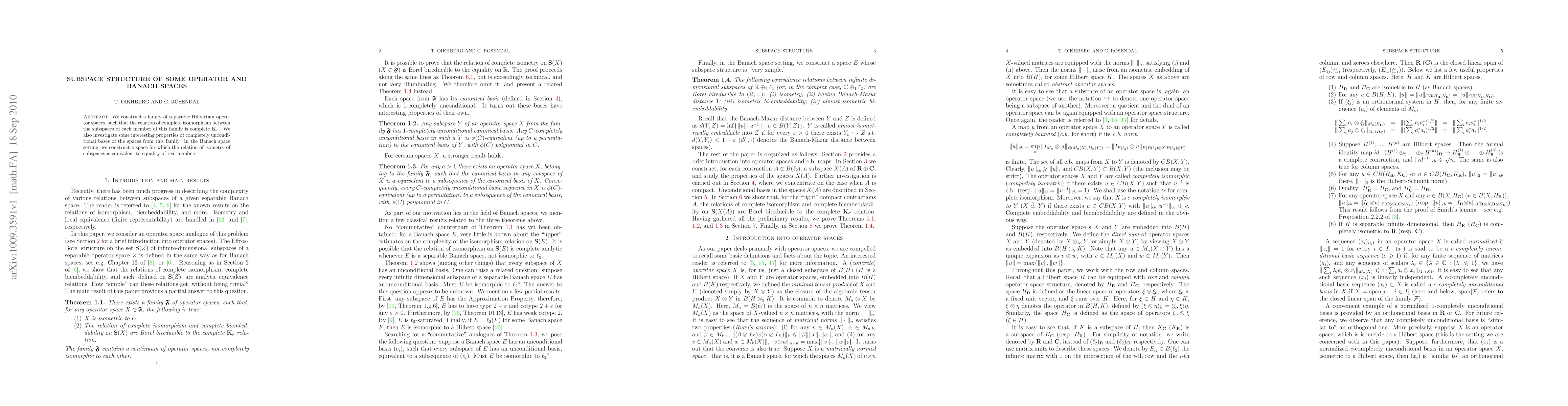 We construct a family of separable Hilbertian operator spaces, such that the relation of complete isomorphism between the subspaces of each member of this family is complete $\ks$. We also investigate some interesting properties of completely unconditional bases of the spaces from this family. In the Banach space setting, we construct a space for which the relation of isometry of subspaces is equivalent to equality of real numbers.
