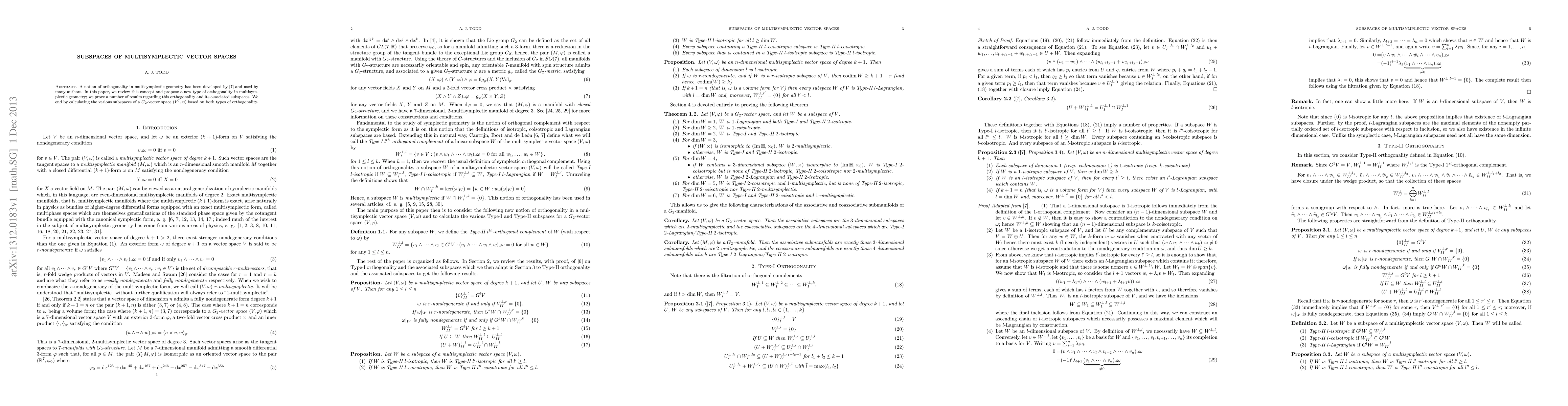 A notion of orthogonality in multisymplectic geometry has been developed by Cantrijn, Ibort and de Le\'on and used by many authors. In this paper, we review this concept and propose a new type of orthogonality in multisymplectic geometry; we prove a number of results regarding this orthogonality and its associated subspaces. We end by calculating the various subspaces of a G_2-vector space based on both types of orthogonality.