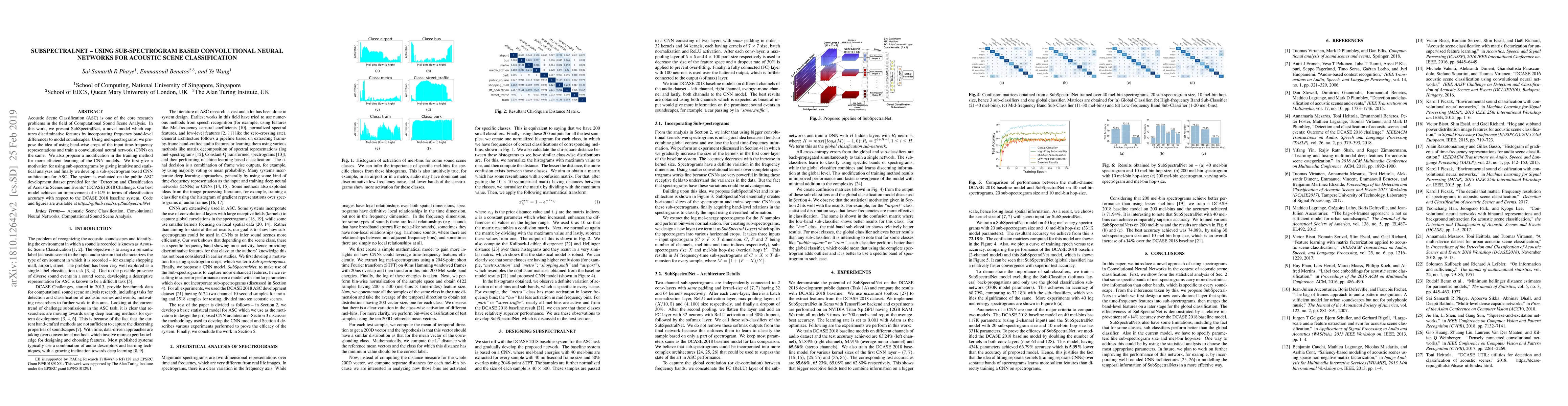 SubSpectralNet introduces a novel convolutional neural network model that uses band-wise crops of mel-spectrograms for Acoustic Scene Classification, achieving a 14% improvement over the DCASE 2018 baseline. The method incorporates frequency band-level differences and proposes a modified training approach for enhanced learning efficiency.