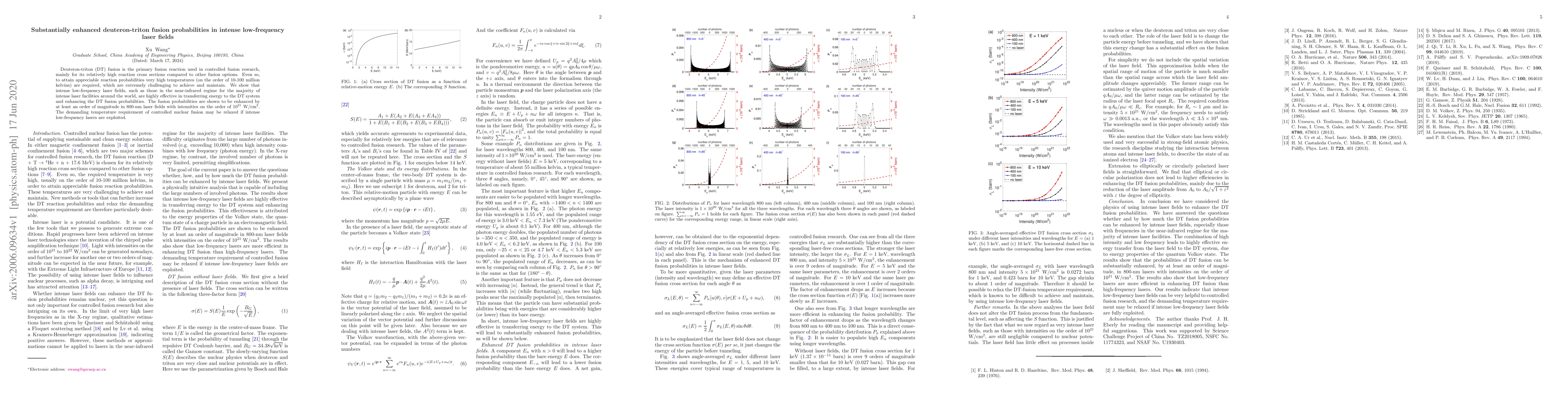 This paper demonstrates that intense low-frequency laser fields significantly enhance deuteron-triton (DT) fusion probabilities, achieving an order of magnitude increase in fusion rates using 800-nm laser fields at 10$^{21}$ W/cm$^2$, potentially reducing the extreme temperature requirements for controlled fusion.