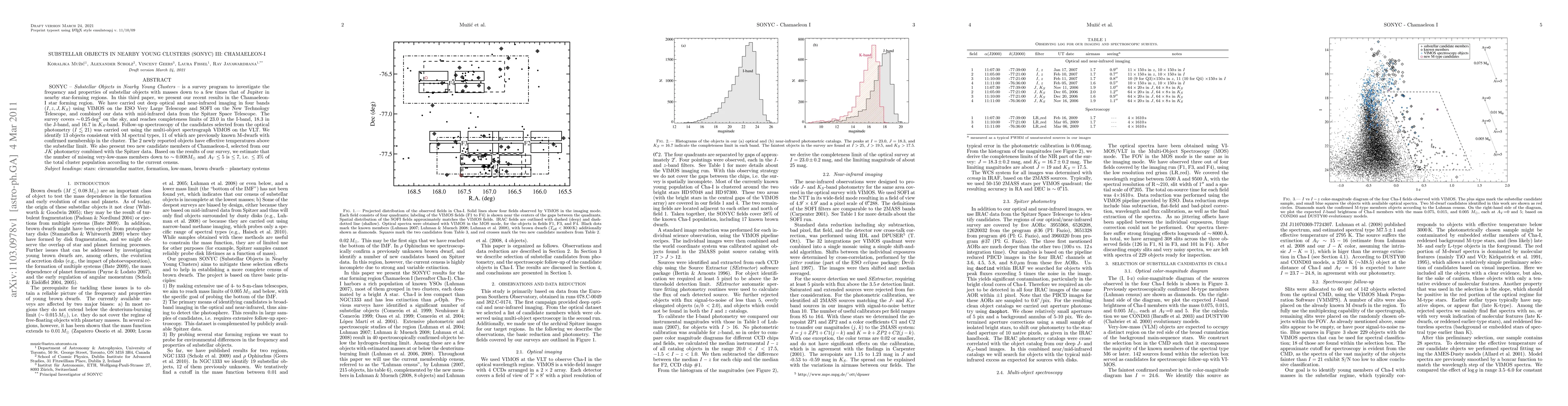 This paper reports on the third installment of the SONYC survey, focusing on the Chamaeleon-I star-forming region. Using deep optical and near-infrared imaging, the study identified 13 M-type objects, including 2 new substellar candidates, and estimates the number of very-low-mass members to be less than 7, or 3% of the total cluster population.