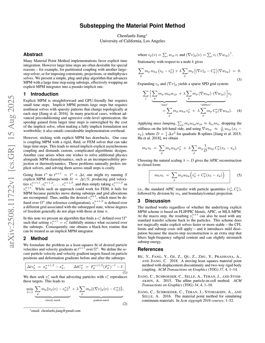 Many Material Point Method implementations favor explicit time integration. However large time steps are often desirable for special reasons - for example, for partitioned coupling with another large-step solver, or for imposing constraints, projections, or multiphysics solves. We present a simple, plug-and-play algorithm that advances MPM with a large time step using substeps, effectively wrapping an explicit MPM integrator into a pseudo-implicit one.