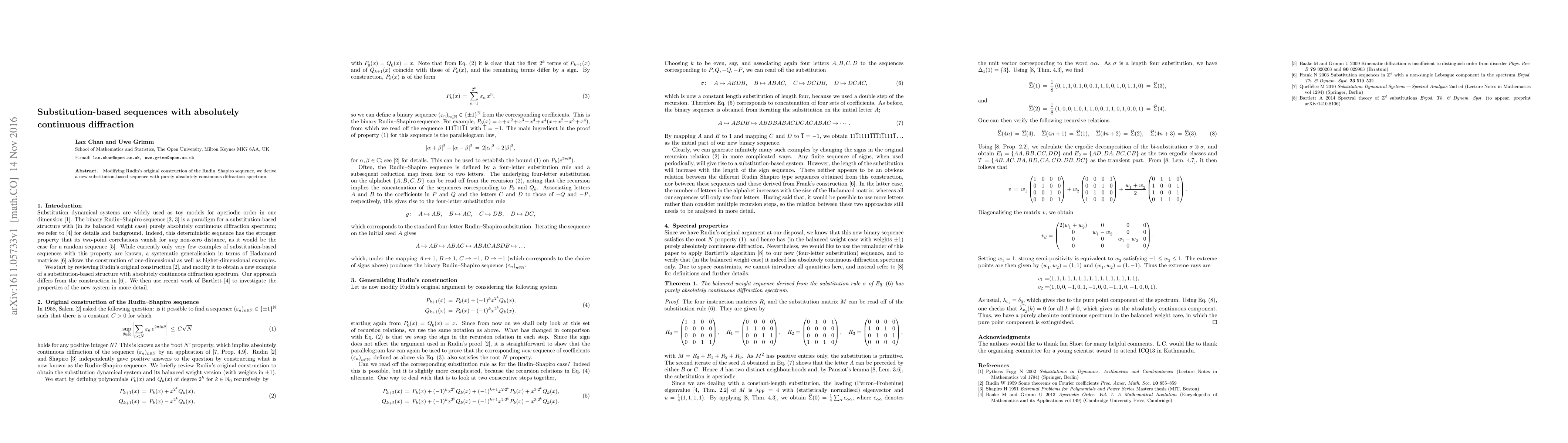 This paper modifies Rudin's original construction to create a new substitution-based sequence that exhibits a purely absolutely continuous diffraction spectrum, differing from traditional sequences with singular diffraction.