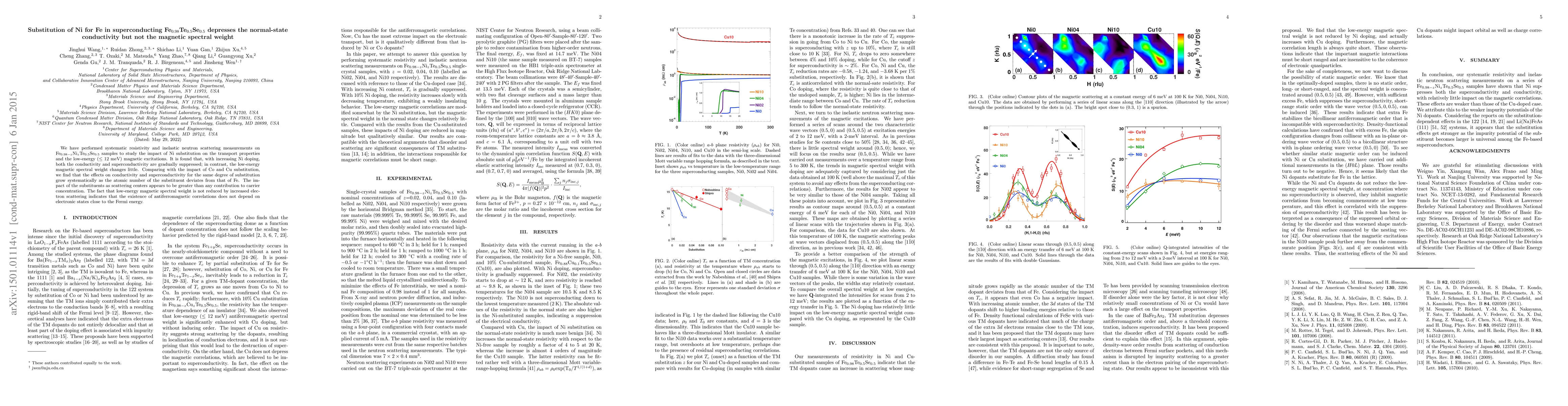 Substituting nickel for iron in a superconducting material suppresses conductivity and superconductivity but preserves magnetic spectral weight. The impact of substitution grows with the atomic number deviation from iron.