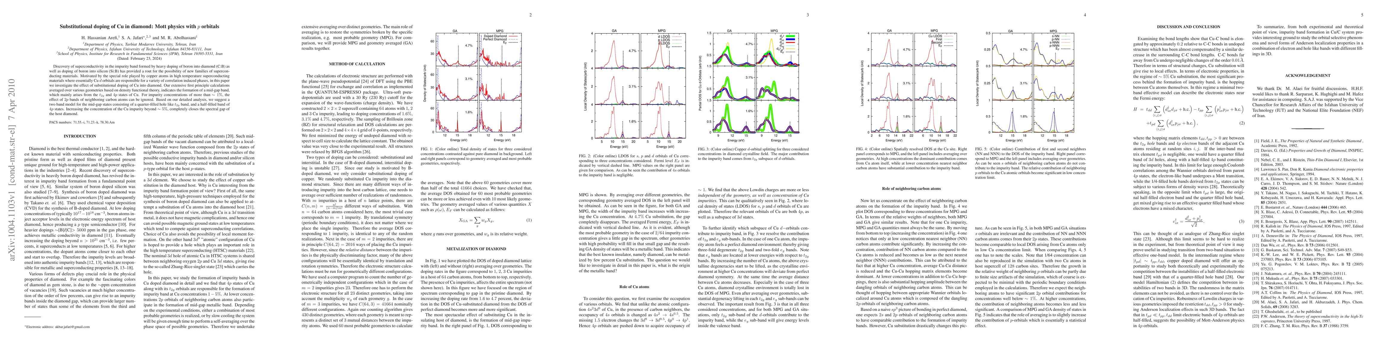 Researchers investigate superconducting materials in doped diamond, discovering a mid-gap band formed from Cu $p$ orbitals and proposing a two-band model for its behavior.