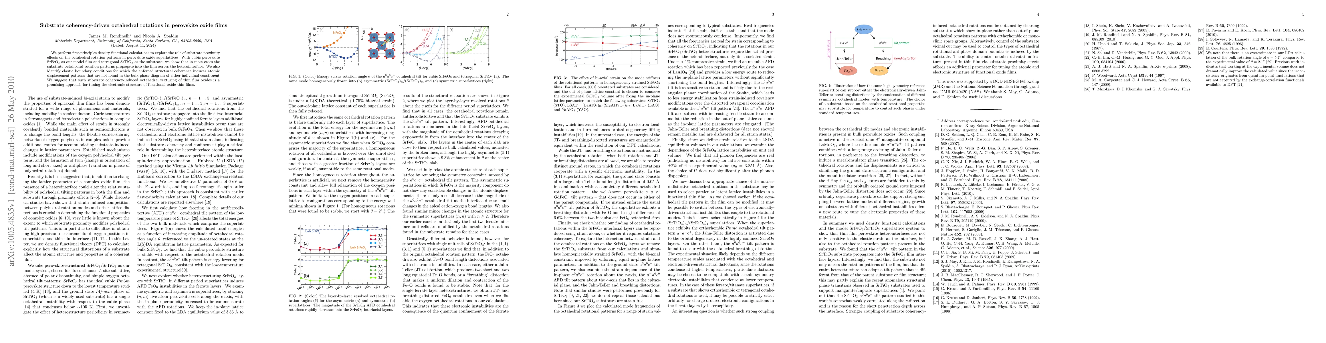 This study uses density functional calculations to investigate how substrate interactions affect octahedral rotations in perovskite oxide superlattices, demonstrating that substrate patterns often propagate into the film. It identifies specific elastic conditions that induce unique atomic displacements not present in bulk phases, suggesting that substrate-driven octahedral texturing can be used to tailor the electronic structure of thin film oxides.