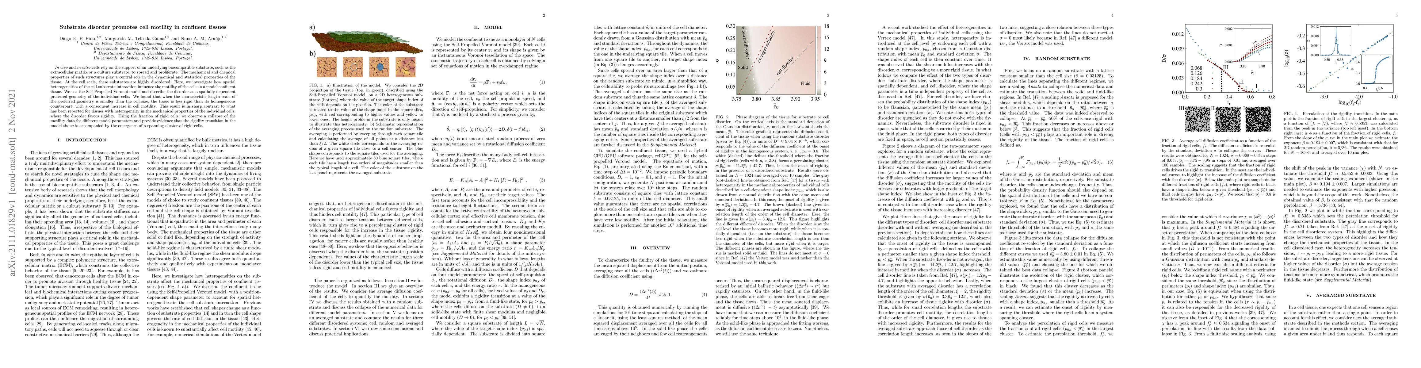 This study reveals that substrate disorder, characterized by a smaller preferred geometry scale compared to cell size, enhances cell motility in confluent tissues, contrasting with the rigidity typically seen in heterogeneous mechanical properties. The research demonstrates a collapse of motility data using the fraction of rigid cells, indicating a rigidity transition accompanied by a spanning cluster of rigid cells.
