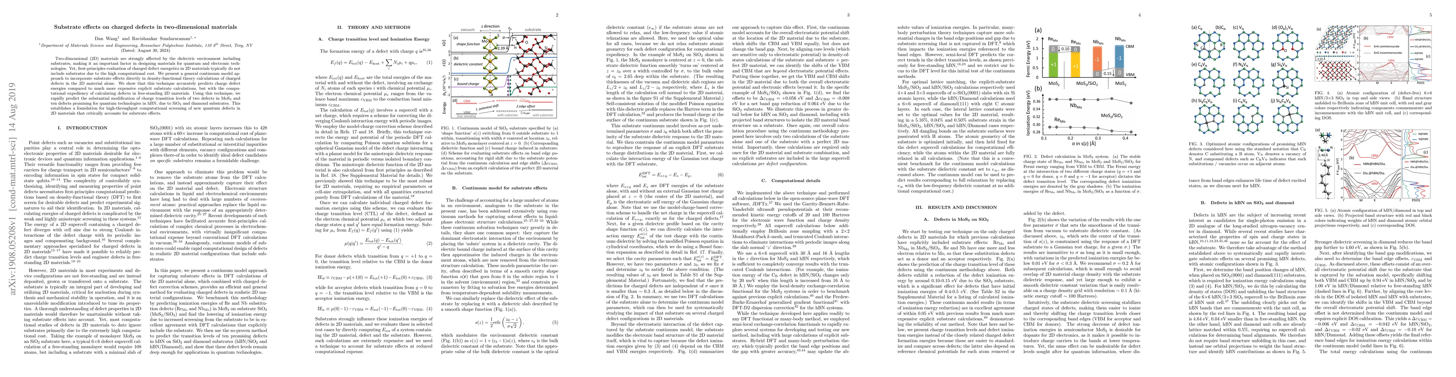 Two-dimensional (2D) materials are strongly affected by the dielectric environment including substrates, making it an important factor in designing materials for quantum and electronic technologies. Yet, first-principles evaluation of charged defect energetics in 2D materials typically do not include substrates due to the high computational cost. We present a general continuum model approach to incorporate substrate effects directly in density-functional theory calculations of charged defects in the 2D material alone. We show that this technique accurately predicts charge defect energies compared to much more expensive explicit substrate calculations, but with the computational expediency of calculating defects in free-standing 2D materials. Using this technique, we rapidly predict the substantial modification of charge transition levels of two defects in MoS$_2$ and ten defects promising for quantum technologies in hBN, due to SiO$_2$ and diamond substrates. This establishes a foundation for high-throughput computational screening of new quantum defects in 2D materials that critically accounts for substrate effects.