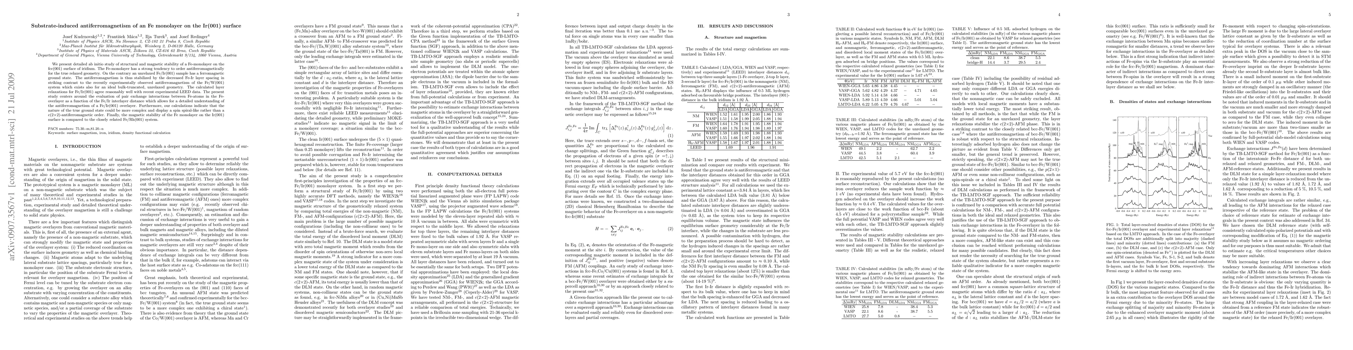 This study reveals that a Fe monolayer on Ir(001) exhibits strong antiferromagnetic ordering due to decreased Fe-Ir layer spacing, contrasting with the ferromagnetic state of an unrelaxed configuration. The findings suggest a complex spin-spiral order and compare the magnetic stability of Fe/Ir(001) with Fe/Rh(001).
