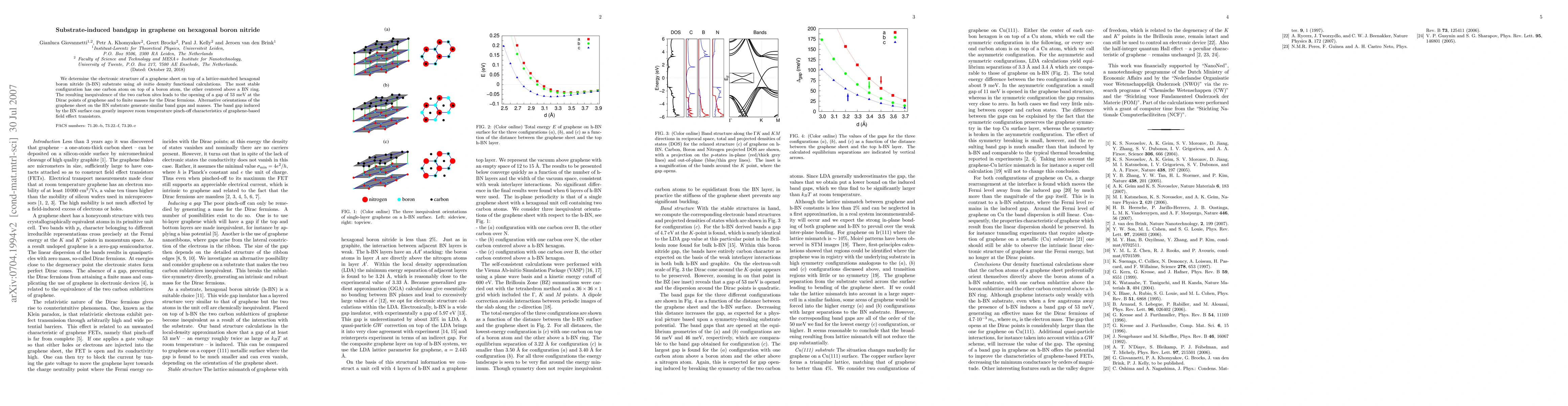 This study reveals that placing graphene on a hexagonal boron nitride substrate induces a 53 meV bandgap at the Dirac points, significantly enhancing the electronic properties for potential applications in field effect transistors. The inequivalent carbon sites above boron and BN rings are key to this gap formation.