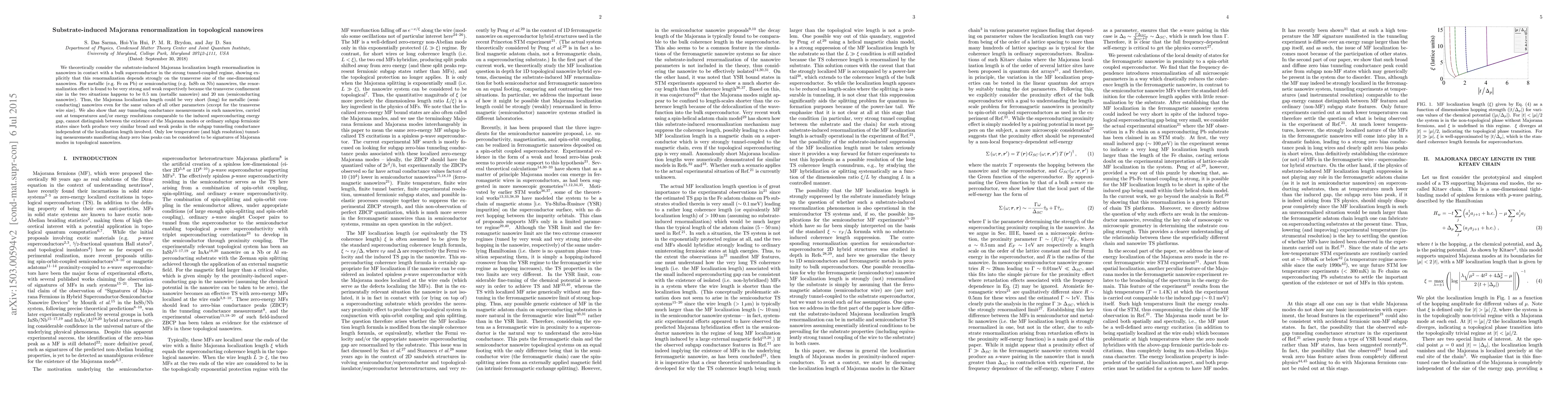 We theoretically consider the substrate-induced Majorana localization length renormalization in nanowires in contact with a bulk superconductor in the strong tunnel-coupled regime, showing explicitly that this renormalization depends strongly on the transverse size of the one-dimensional nanowires. For metallic (e.g. Fe on Pb) or semiconducting (e.g. InSb on Nb) nanowires, the renormalization effect is found to be very strong and weak respectively because the transverse confinement size in the two situations happens to be 0.5nm (metallic nanowire) and 20nm (semiconducting nanowire). Thus, the Majorana localization length could be very short (long) for metallic (semiconducting) nanowires even for the same values of all other parameters (except for the transverse wire size). We also show that any tunneling conductance measurements in such nanowires, carried out at temperatures and/or energy resolutions comparable to the induced superconducting energy gap, cannot distinguish between the existence of the Majorana modes or ordinary subgap fermionic states since both produce very similar broad and weak peaks in the subgap tunneling conductance independent of the localization length involved. Only low temperature (and high resolution) tunneling measurements manifesting sharp zero bias peaks can be considered to be signatures of Majorana modes in topological nanowires.