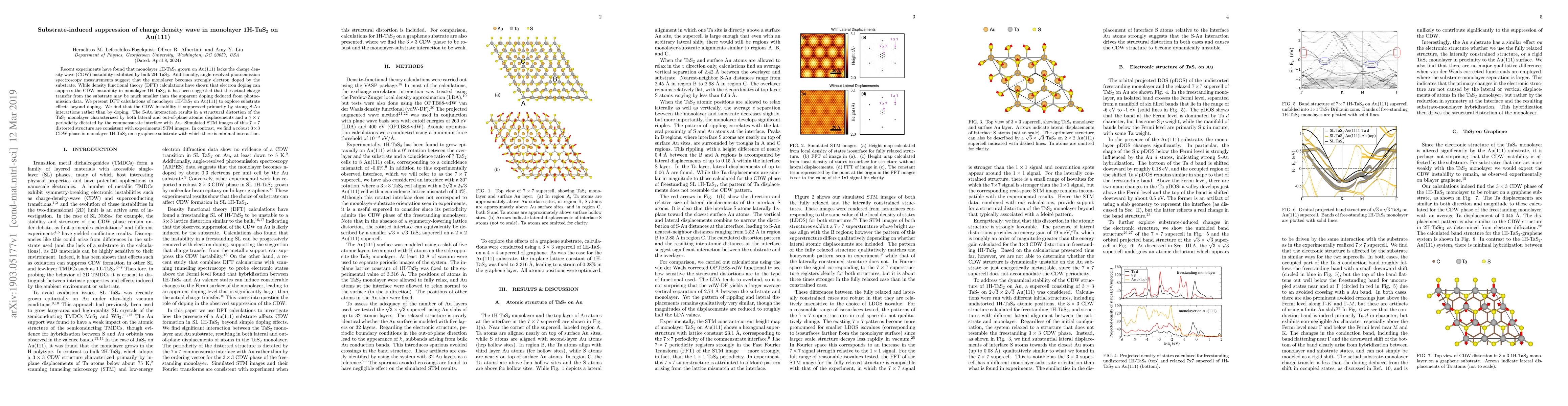 The research reveals that the suppression of charge density wave (CDW) in monolayer 1H-TaS2 on Au(111) is mainly due to strong S-Au interactions causing structural distortions, not just electron doping. In contrast, a robust 3x3 CDW phase persists on a graphene substrate with minimal interaction.