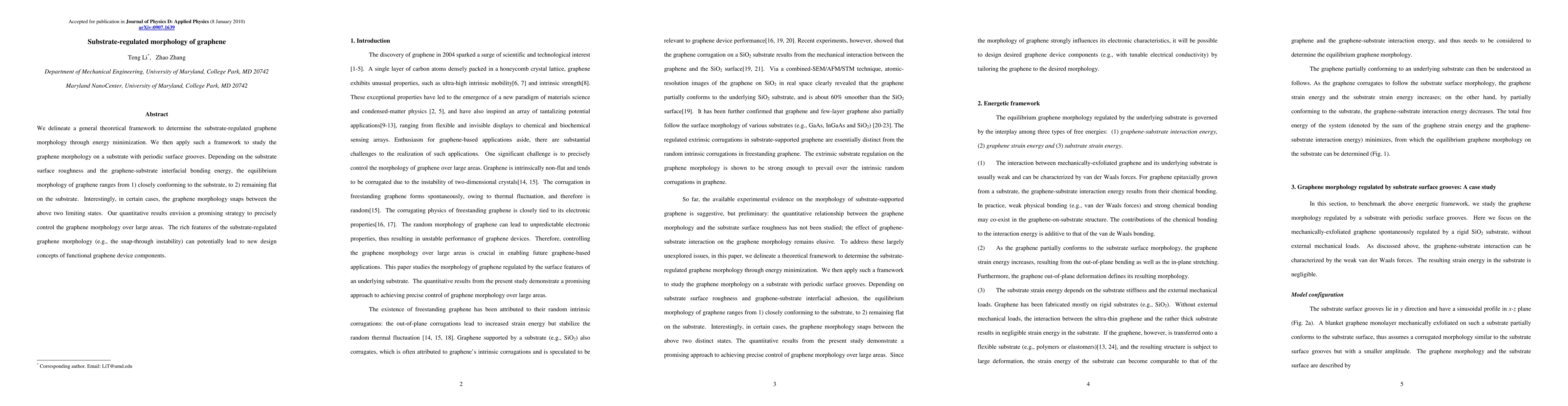 We delineate a general theoretical framework to determine the substrate-regulated graphene morphology through energy minimization. We then apply such a framework to study the graphene morphology on a substrate with periodic surface grooves. Depending on the substrate surface roughness and the graphene-substrate interfacial bonding energy, the equilibrium morphology of graphene ranges from 1) closely conforming to the substrate, to 2) remaining flat on the substrate. Interestingly, in certain cases, the graphene morphology snaps between the above two limiting states. Our quantitative results envision a promising strategy to precisely control the graphene morphology over large areas. The rich features of the substrate-regulated graphene morphology (e.g., the snap-through instability) can potentially lead to new design concepts of functional graphene device components.