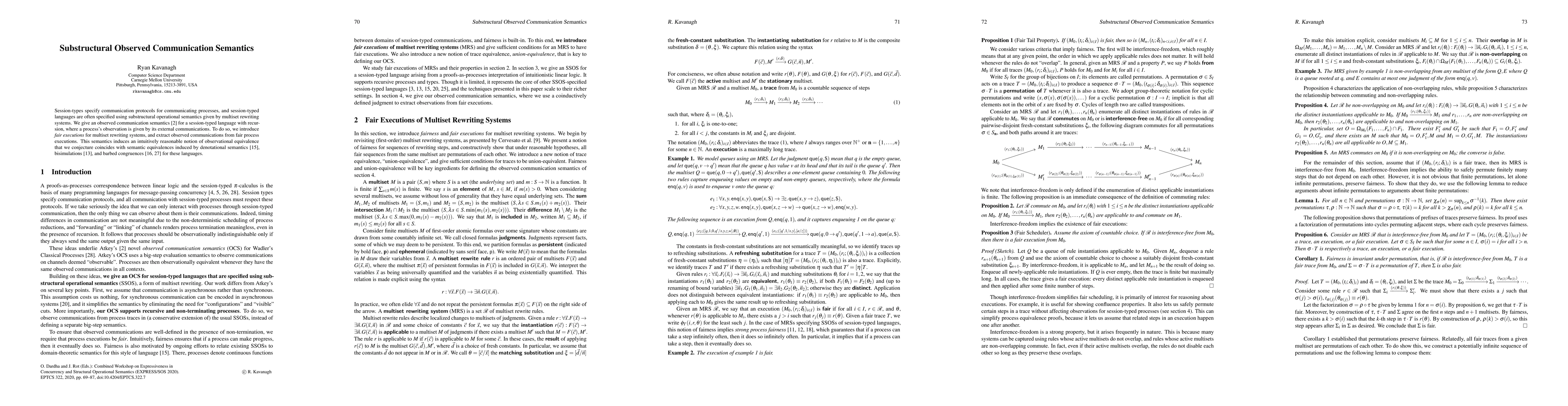 Session-types specify communication protocols for communicating processes, and session-typed languages are often specified using substructural operational semantics given by multiset rewriting systems. We give an observed communication semantics for a session-typed language with recursion, where a process's observation is given by its external communications. To do so, we introduce fair executions for multiset rewriting systems, and extract observed communications from fair process executions. This semantics induces an intuitively reasonable notion of observational equivalence that we conjecture coincides with semantic equivalences induced by denotational semantics, bisimulations, and barbed congruences for these languages.