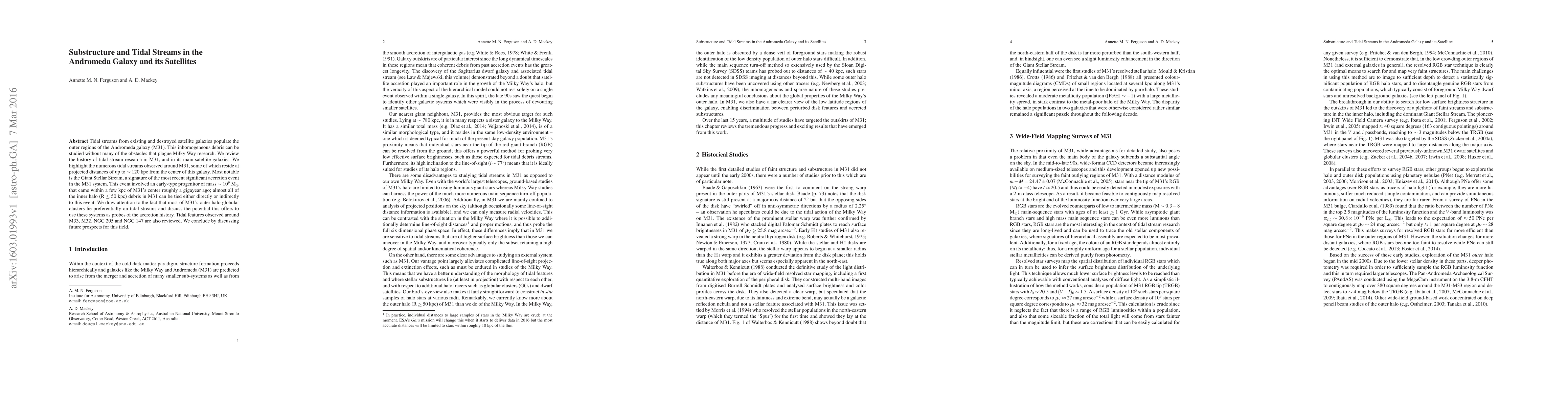 This paper reviews tidal streams in the Andromeda Galaxy (M31) and its satellites, highlighting the Giant Stellar Stream as a key feature from a recent accretion event. It discusses the potential of M31's outer halo globular clusters as probes of its accretion history and reviews tidal features in other satellites.