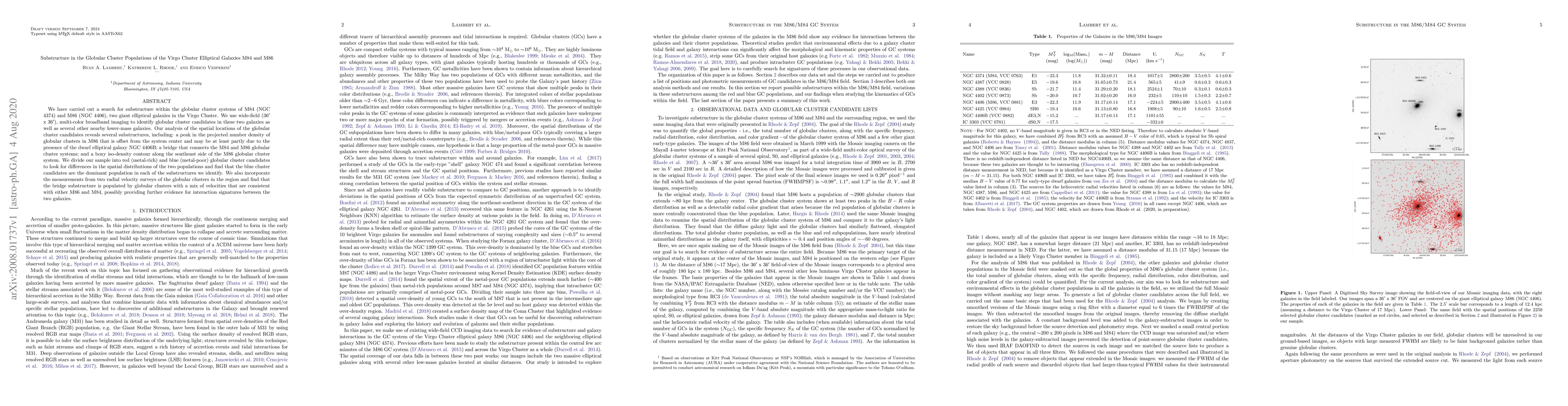 This study identifies substructures within the globular cluster systems of the Virgo Cluster elliptical galaxies M84 and M86, revealing a peak in M86's clusters offset from its center, a bridge connecting M84 and M86, and a boxy contour in M86. The blue (metal-poor) clusters predominantly populate these substructures, and the bridge shows mixed velocities, suggesting interaction between M84 and M86.