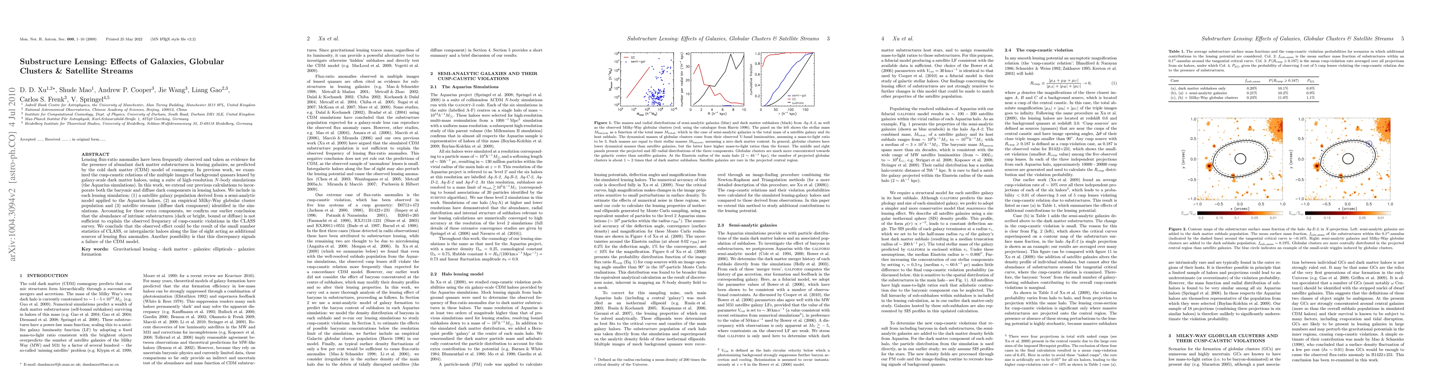 Lensing flux-ratio anomalies have been frequently observed and taken as evidence for the presence of abundant dark matter substructures in lensing galaxies, as predicted by the cold dark matter (CDM) model of cosmogony. In previous work, we examined the cusp-caustic relations of the multiple images of background quasars lensed by galaxy-scale dark matter haloes, using a suite of high-resolution N-body simulations (the Aquarius simulations). In this work, we extend our previous calculations to incorporate both the baryonic and diffuse dark components in lensing haloes. We include in each lensing simulation: (1) a satellite galaxy population derived from a semi-analytic model applied to the Aquarius haloes, (2) an empirical Milky-Way globular cluster population and (3) satellite streams (diffuse dark component) identified in the simulations. Accounting for these extra components, we confirm our earlier conclusion that the abundance of intrinsic substructures (dark or bright, bound or diffuse) is not sufficient to explain the observed frequency of cusp-caustic violations in the CLASS survey. We conclude that the observed effect could be the result of the small number statistics of CLASS, or intergalactic haloes along the line of sight acting as additional sources of lensing flux anomalies. Another possibility is that this discrepancy signals a failure of the CDM model.