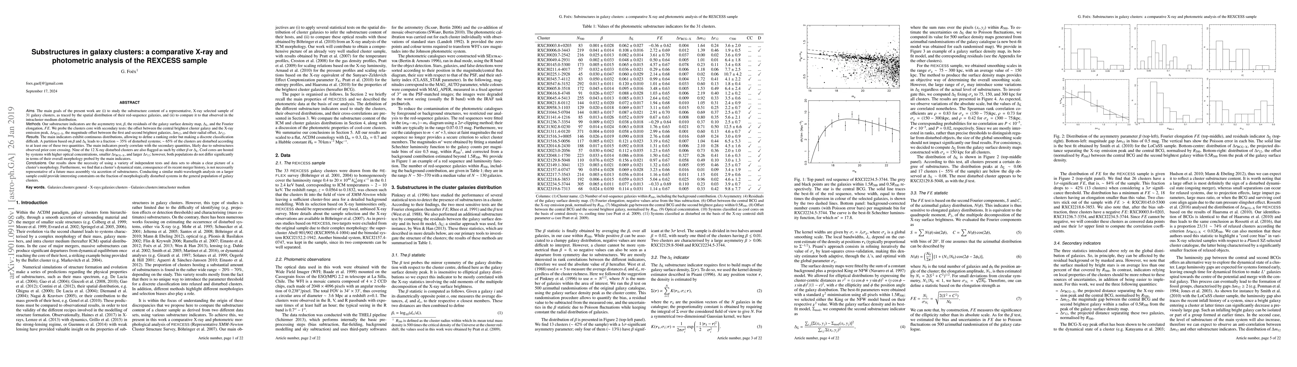 This study investigates the substructures in 31 galaxy clusters using X-ray and photometric data, finding that 35% show significant disturbances, with most clusters exhibiting some level of disturbance. The analysis highlights the need for multiple tests to accurately assess cluster morphology, revealing that recent merger history does not predict future mass assembly via substructure accretion.
