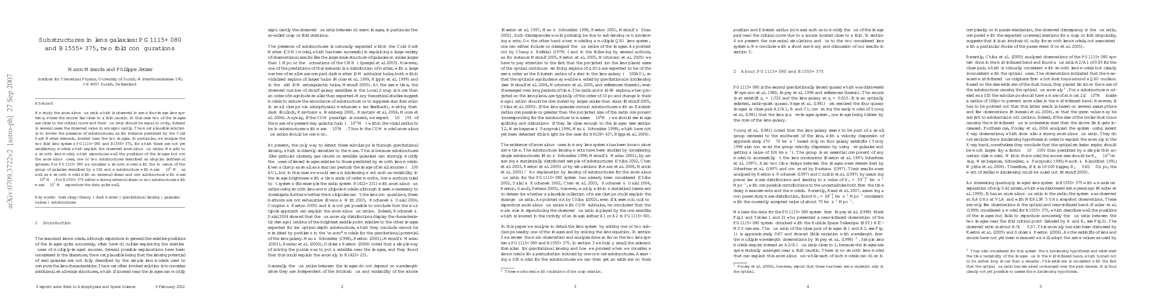 This paper investigates the anomalous flux ratios in two fold lens systems, PG1115+080 and B1555+375, suggesting that the observed discrepancies arise from the presence of substructures near the lens images. The study proposes the addition of singular isothermal sphere substructures to smooth lens models to better explain the flux ratios.