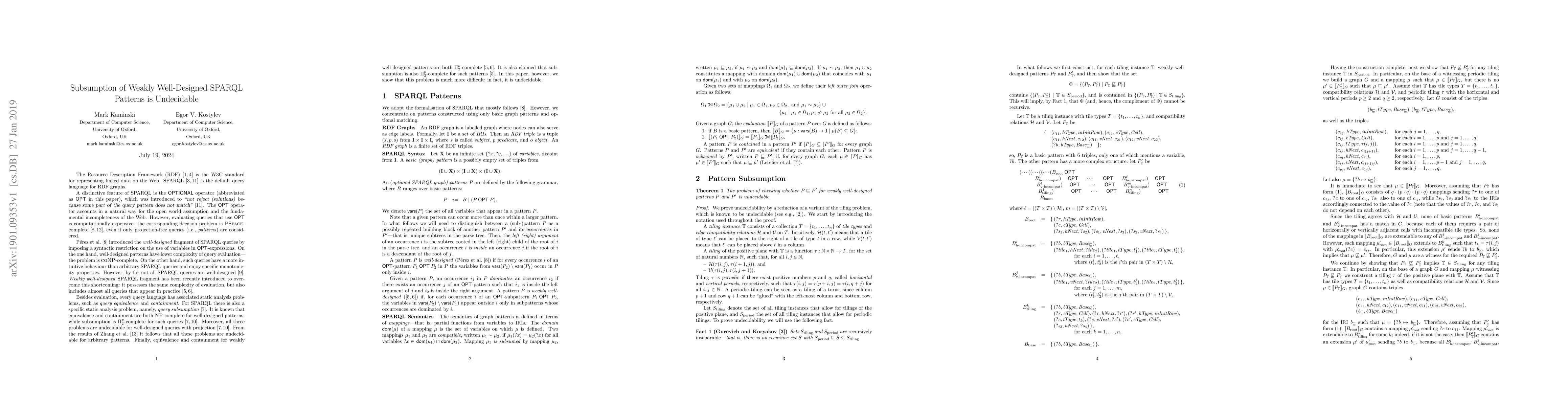 This paper demonstrates that determining subsumption for weakly well-designed SPARQL patterns is undecidable, contrasting sharply with the decidability of subsumption for well-designed patterns, and highlighting a significant computational challenge in SPARQL pattern analysis.