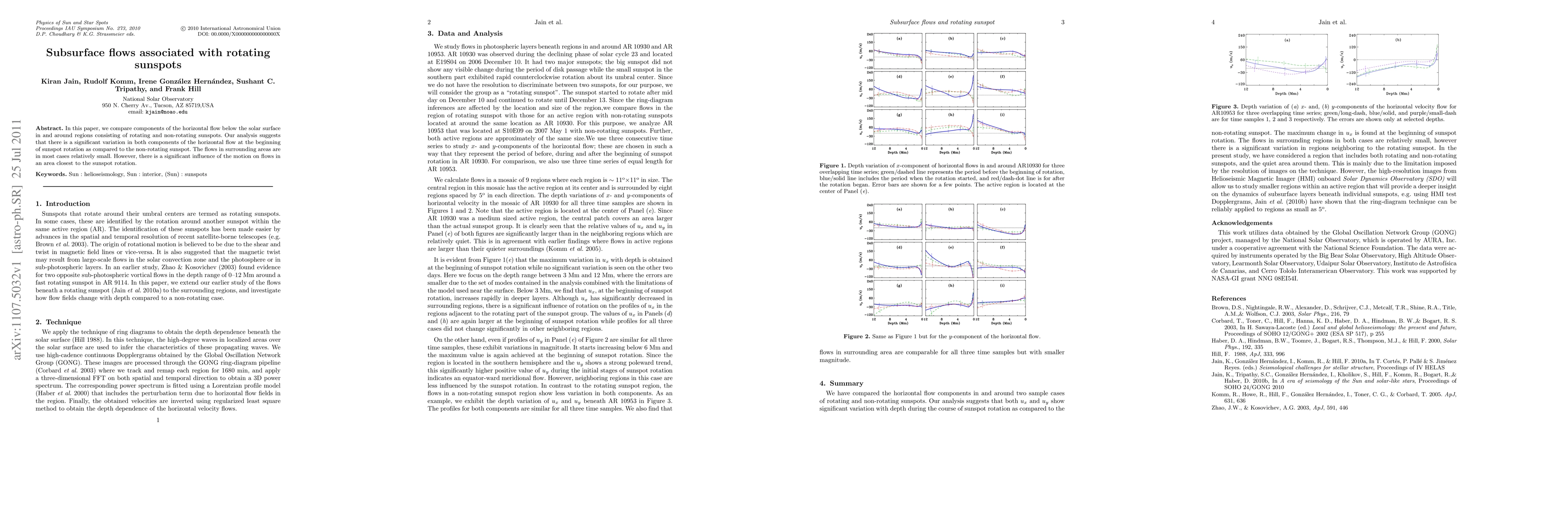 In this paper, we compare components of the horizontal flow below the solar surface in and around regions consisting of rotating and non-rotating sunspots. Our analysis suggests that there is a significant variation in both components of the horizontal flow at the beginning of sunspot rotation as compared to the non-rotating sunspot. In most cases, the flows in surrounding areas are relatively small. However, there is a significant influence of the motion on flows in an area closest to the sunspot rotation.