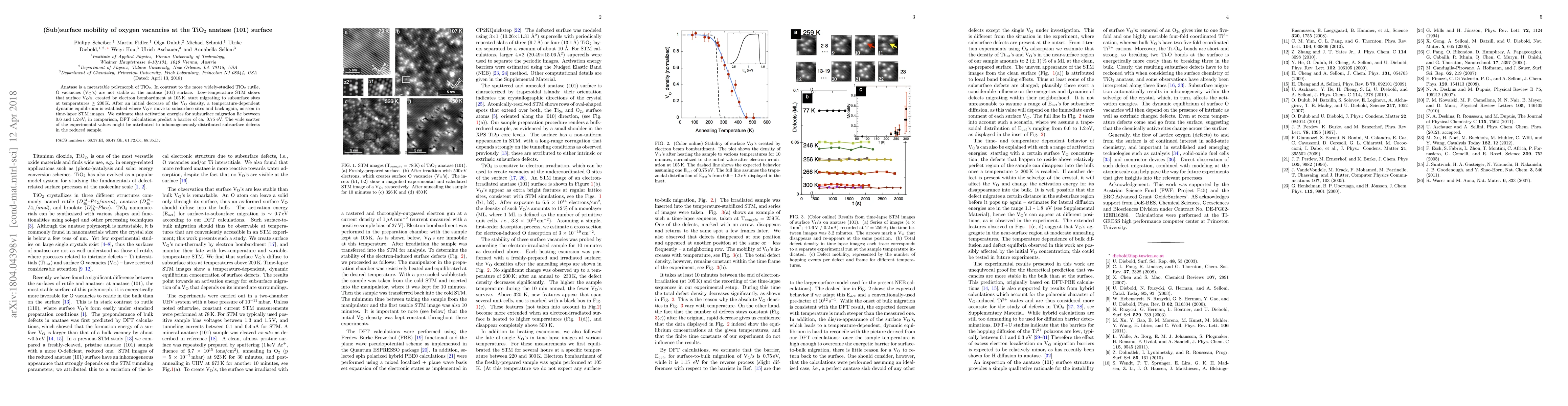 Researchers found that oxygen vacancies on the anatase TiO2 surface migrate to subsurface sites at temperatures above 200K, with activation energies ranging from 0.6 to 1.2 eV.