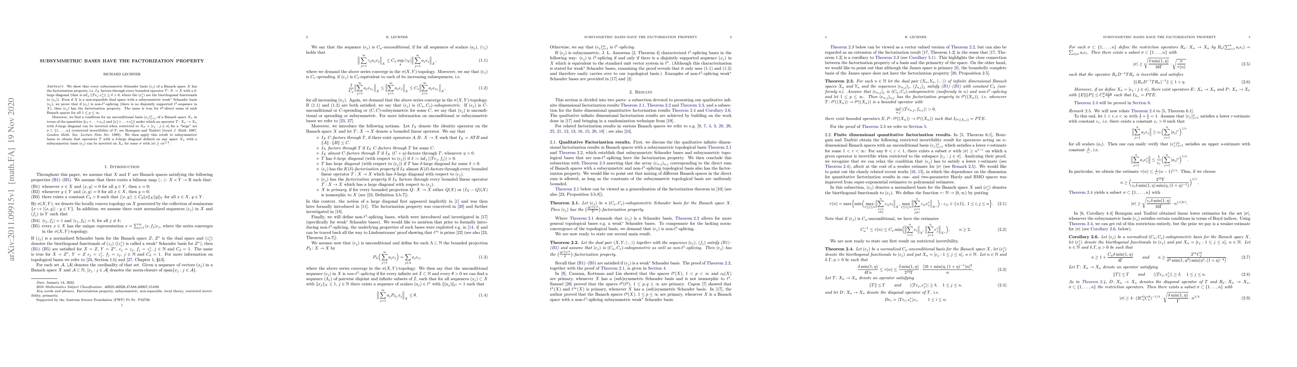 This research proves that subsymmetric Schauder bases in Banach spaces possess the factorization property, even in non-separable dual spaces with specific conditions. It also presents a condition for unconditional bases to ensure invertibility of operators with large diagonals, applicable to subsymmetric bases, leading to their invertibility on certain subspaces.