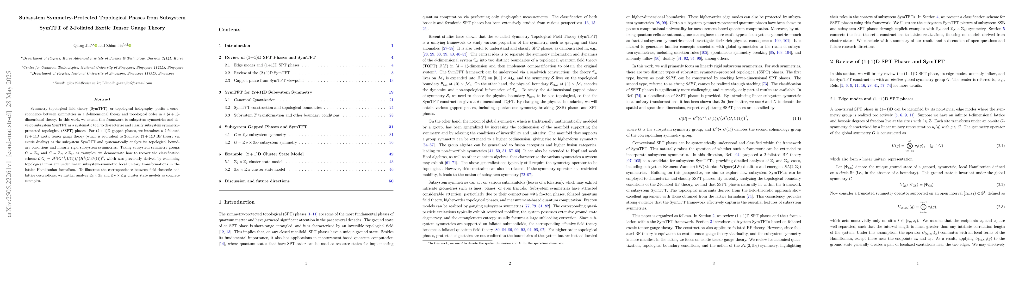 The development of subsystem SymTFT as a systematic tool for characterizing and classifying SSPT phases, along with the analysis of 2-foliated exotic tensor gauge theory as its underlying mathematical structure.