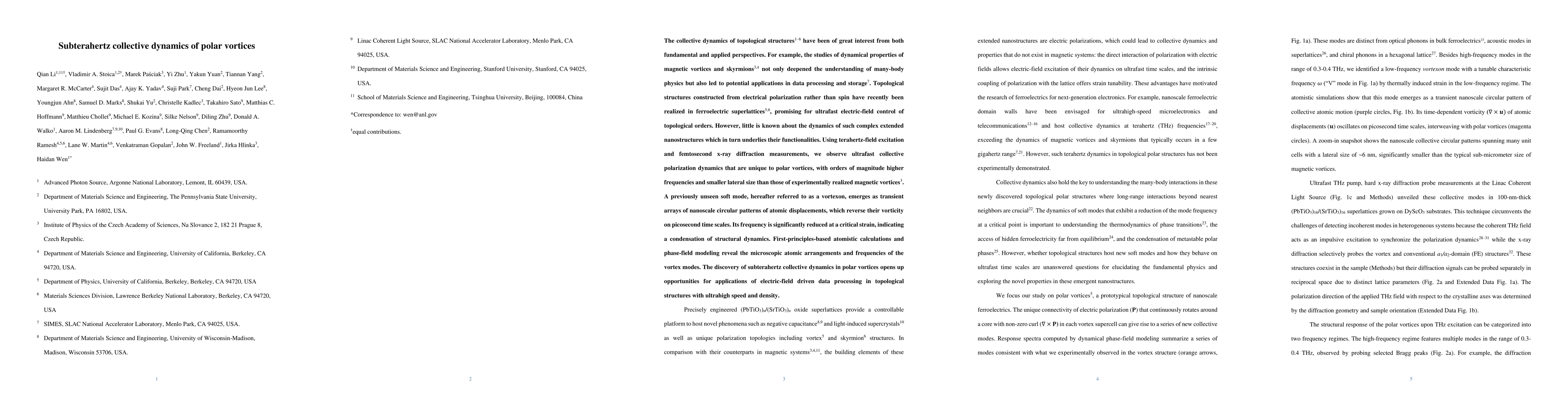 Researchers discovered ultrafast collective polarization dynamics in polar vortices, with frequencies 100x higher than magnetic vortices, enabling potential applications for electric-field driven data processing.