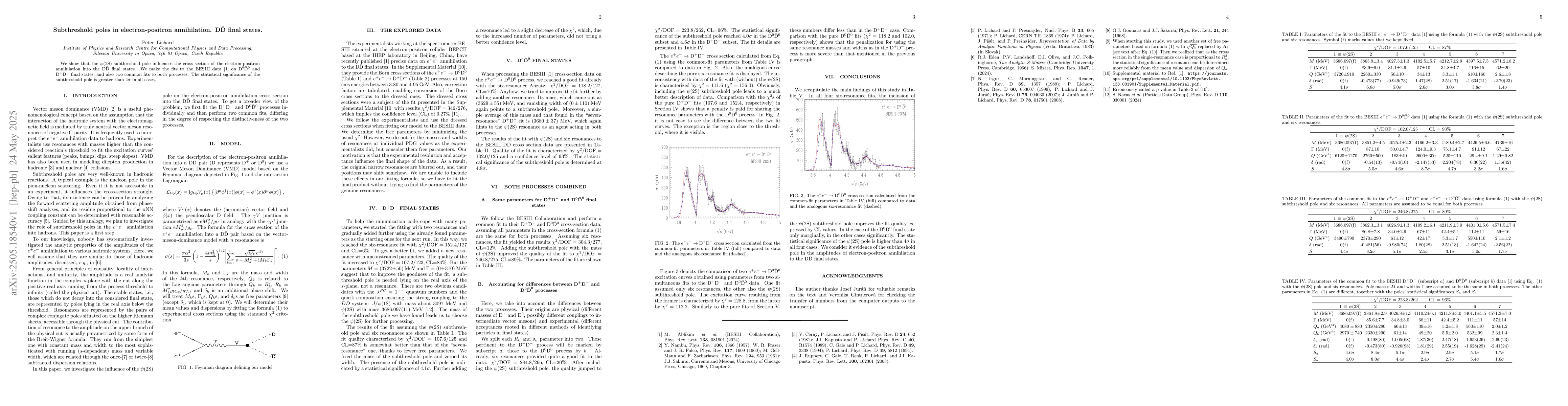 The paper presents a detailed analysis of subthreshold pole effects using BESIII data, employing fits to DD final states to establish a robust (>4σ) statistical significance.