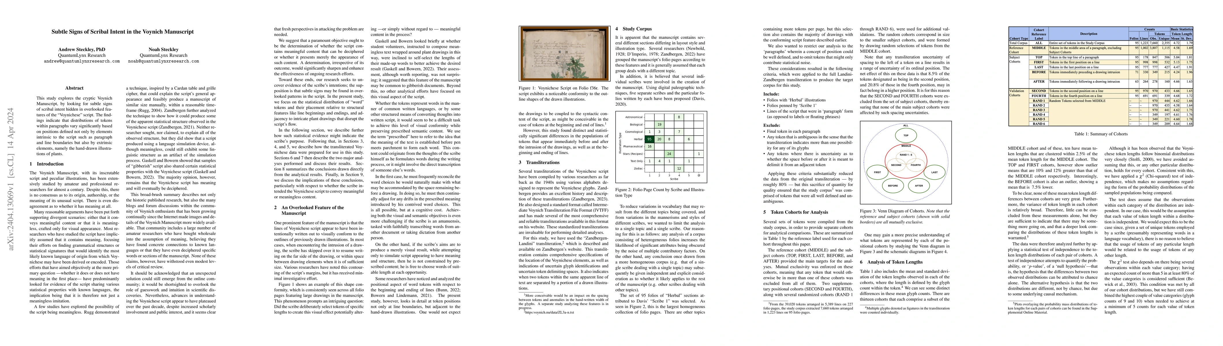 This study explores the cryptic Voynich Manuscript, by looking for subtle signs of scribal intent hidden in overlooked features of the "Voynichese" script. The findings indicate that distributions of tokens within paragraphs vary significantly based on positions defined not only by elements intrinsic to the script such as paragraph and line boundaries but also by extrinsic elements, namely the hand-drawn illustrations of plants.