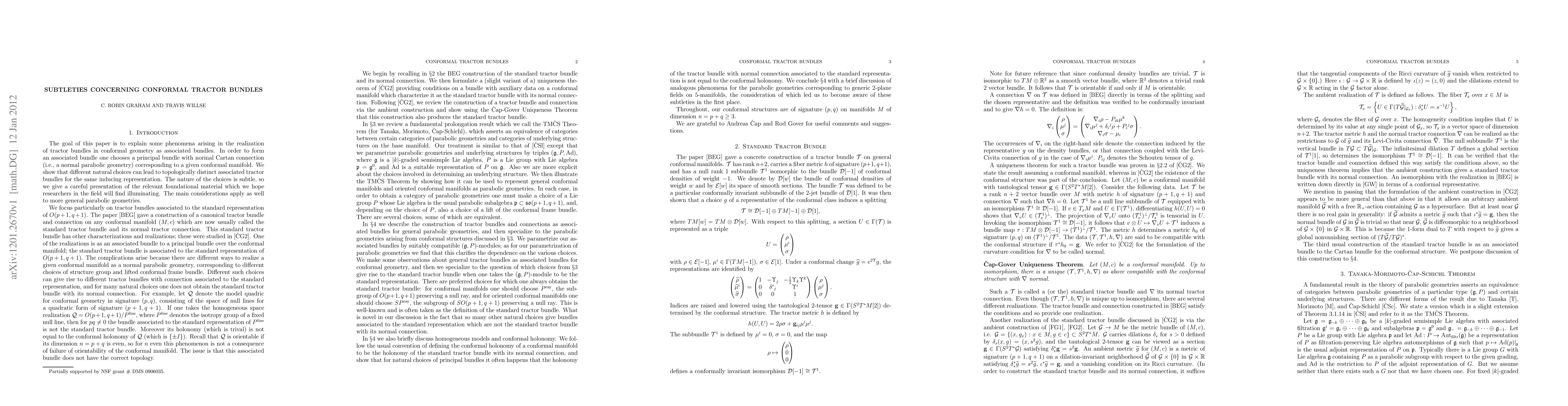 This paper explores how tractor bundles, fundamental in conformal geometry, can vary topologically based on different choices of principal bundles. It also discusses implications for homogeneous models and conformal holonomy, alongside a detailed review of standard tractor bundle theory and the equivalence between parabolic geometries.