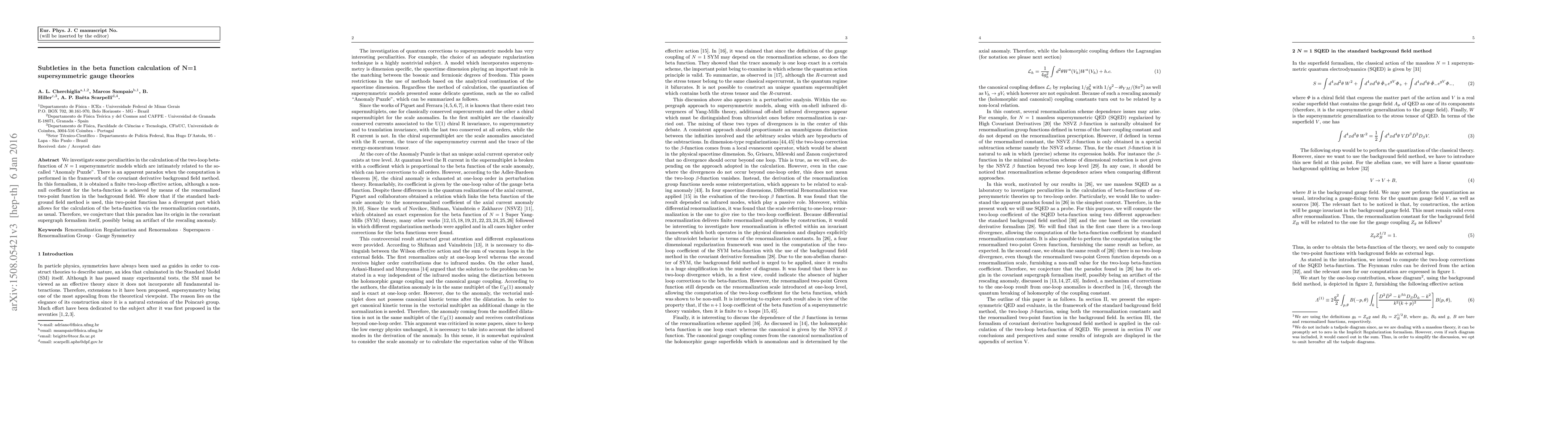 We investigate some peculiarities in the calculation of the two-loop beta-function of $N=1$ supersymmetric models which are intimately related to the so-called "Anomaly Puzzle". There is an apparent paradox when the computation is performed in the framework of the covariant derivative background field method. In this formalism, it is obtained a finite two-loop effective action, although a non-null coefficient for the beta-function is achieved by means of the renormalized two-point function in the background field. We show that if the standard background field method is used, this two-point function has a divergent part which allows for the calculation of the beta-function via the renormalization constants, as usual. Therefore, we conjecture that this paradox has its origin in the covariant supergraph formalism itself, possibly being an artifact of the rescaling anomaly.
