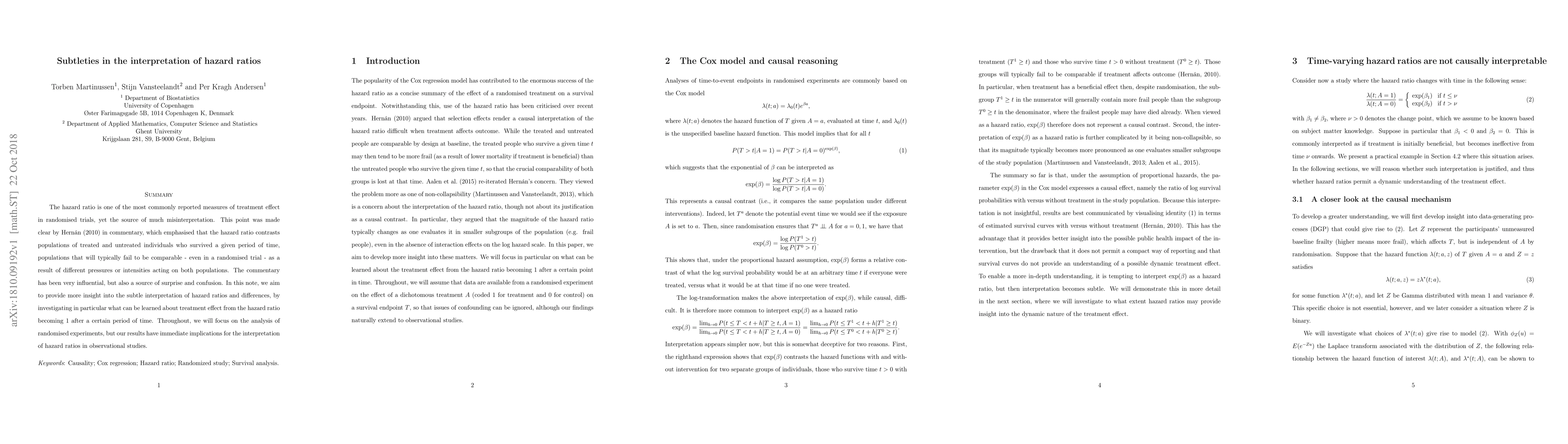 The hazard ratio is one of the most commonly reported measures of treatment effect in randomised trials, yet the source of much misinterpretation. This point was made clear by (Hernan, 2010) in commentary, which emphasised that the hazard ratio contrasts populations of treated and untreated individuals who survived a given period of time, populations that will typically fail to be comparable - even in a randomised trial - as a result of different pressures or intensities acting on both populations. The commentary has been very influential, but also a source of surprise and confusion. In this note, we aim to provide more insight into the subtle interpretation of hazard ratios and differences, by investigating in particular what can be learned about treatment effect from the hazard ratio becoming 1 after a certain period of time. Throughout, we will focus on the analysis of randomised experiments, but our results have immediate implications for the interpretation of hazard ratios in observational studies.
