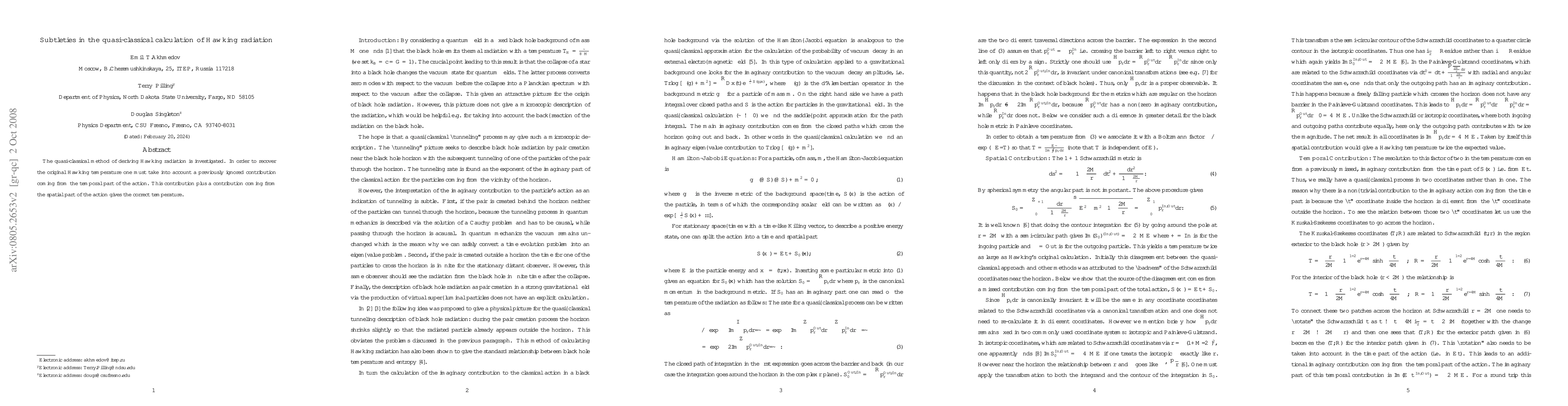 This paper explores the quasi-classical derivation of Hawking radiation, revealing that an overlooked temporal contribution to the action, when combined with the spatial part, accurately reproduces Hawking's original temperature prediction.