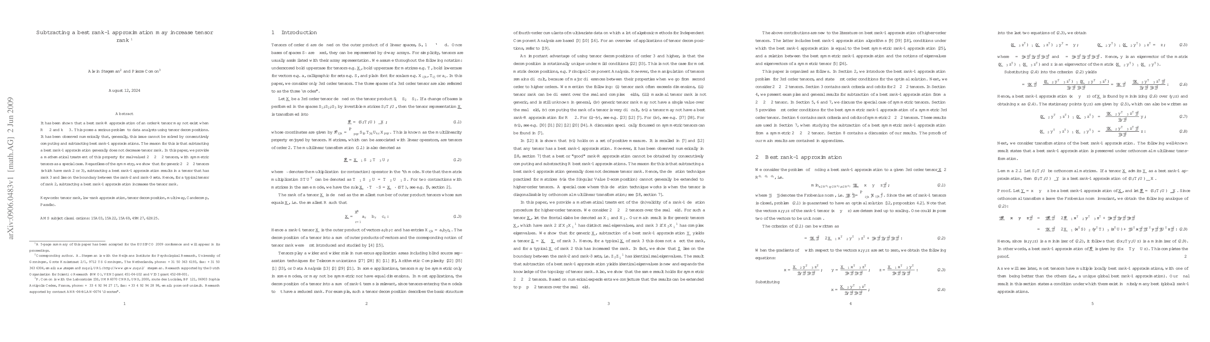 This paper demonstrates that subtracting a best rank-1 approximation from a generic 2x2x2 tensor typically increases its rank to 3, even when the original tensor is of rank 2 or 3. This finding challenges the common numerical approach of using rank-1 subtractions to address the lack of best rank-R approximations for higher ranks in tensor decompositions.
