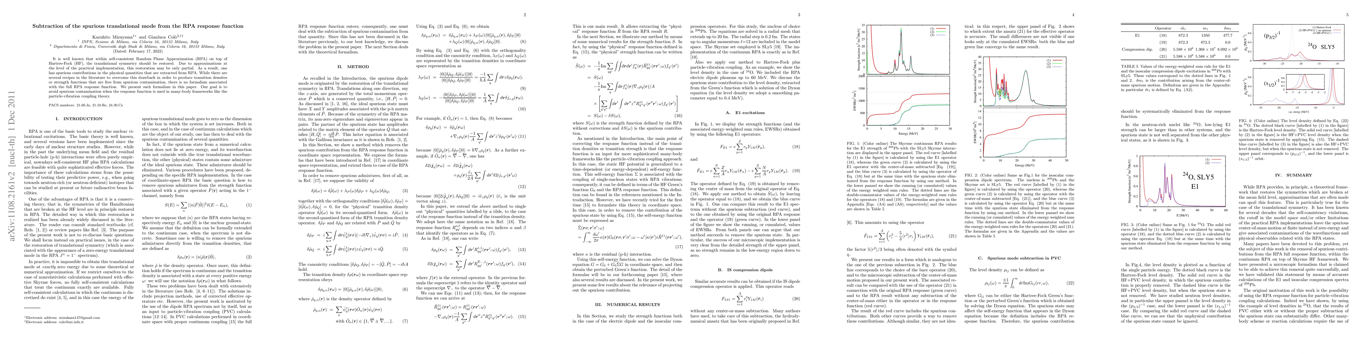 Researchers developed a formalism to remove spurious translational modes from Random Phase Approximation (RPA) responses, improving the accuracy of calculations in many-body frameworks like particle-vibration coupling theory.
