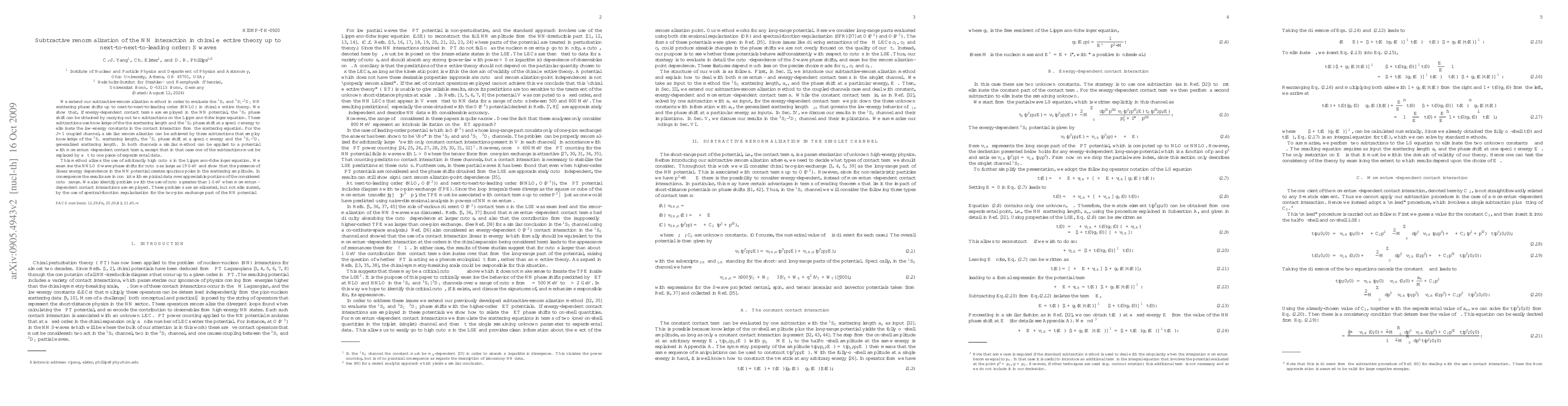 We extend our subtractive-renormalization method in order to evaluate the 1S0 and 3S1-3D1 NN scattering phase shifts up to next-to-next-to-leading order (NNLO) in chiral effective theory. We show that, if energy-dependent contact terms are employed in the NN potential, the 1S0 phase shift can be obtained by carrying out two subtractions on the Lippmann-Schwinger equation. These subtractions use knowledge of the the scattering length and the 1S0 phase shift at a specific energy to eliminate the low-energy constants in the contact interaction from the scattering equation. For the J=1 coupled channel, a similar renormalization can be achieved by three subtractions that employ knowledge of the 3S1 scattering length, the 3S1 phase shift at a specific energy and the 3S1-3D1 generalized scattering length. In both channels a similar method can be applied to a potential with momentum-dependent contact terms, except that in that case one of the subtractions must be replaced by a fit to one piece of experimental data. This method allows the use of arbitrarily high cutoffs in the Lippmann-Schwinger equation. We examine the NNLO S-wave phase shifts for cutoffs as large as 5 GeV and show that the presence of linear energy dependence in the NN potential creates spurious poles in the scattering amplitude. In consequence the results are in conflict with empirical data over appreciable portions of the considered cutoff range. We also identify problems with the use of cutoffs greater than 1 GeV when momentum-dependent contact interactions are employed. These problems are ameliorated, but not eliminated, by the use of spectral-function regularization for the two-pion exchange part of the NN potential